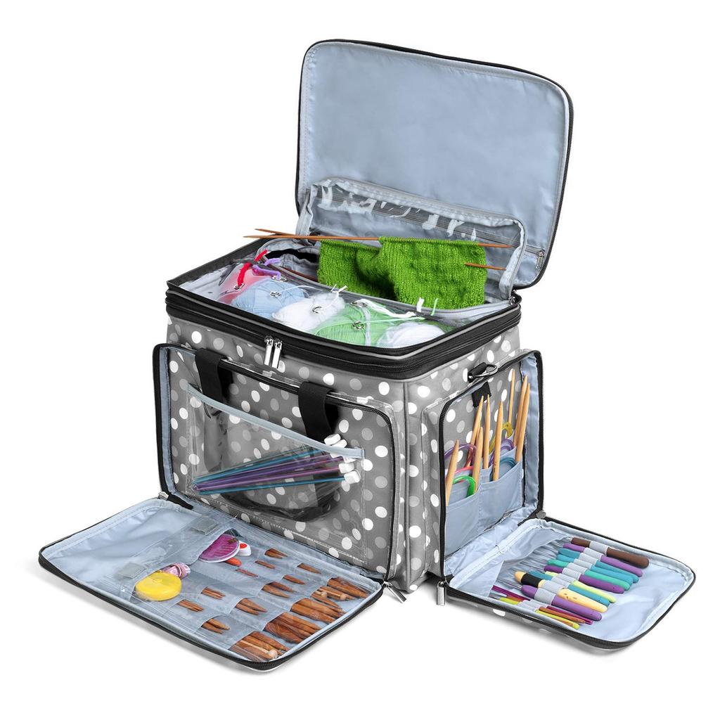 Luxja Stricktasche für Rundstricknadeln und Häkelnadeln Perfekt für die Aufbewahrung und den Transport von Strickzubehör Garn, Nadeln, Haken, (14"/35cm) -