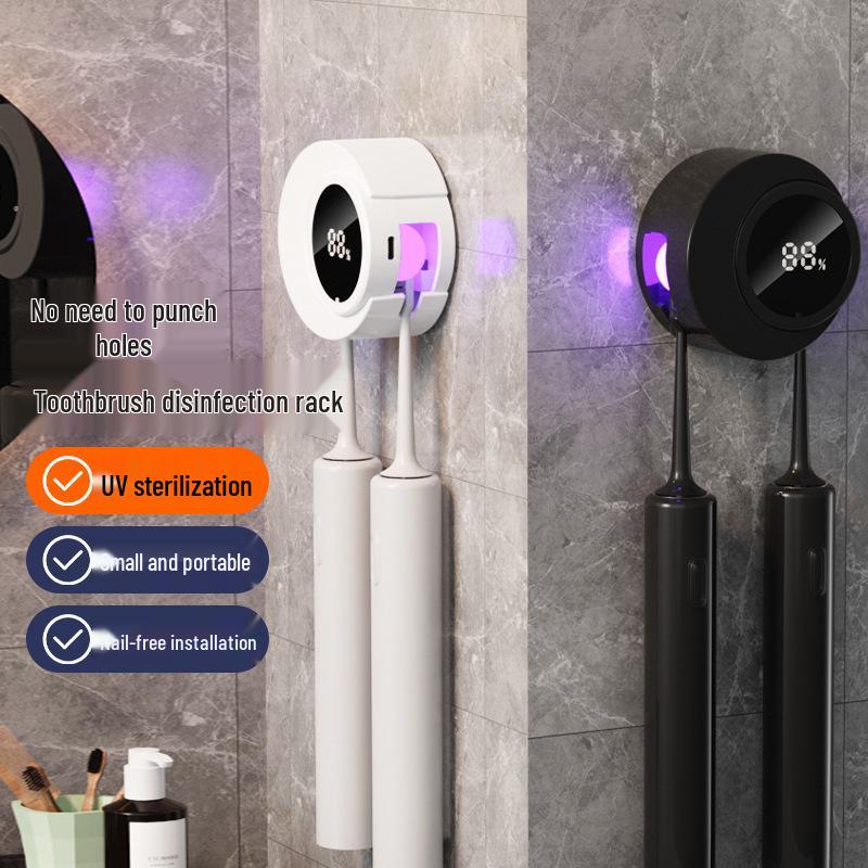 UV-sterilisierender Zahnbürstenhalter: Wandmontiert, Bohrlos, Reiniger & Trockner für den Heimgebrauch