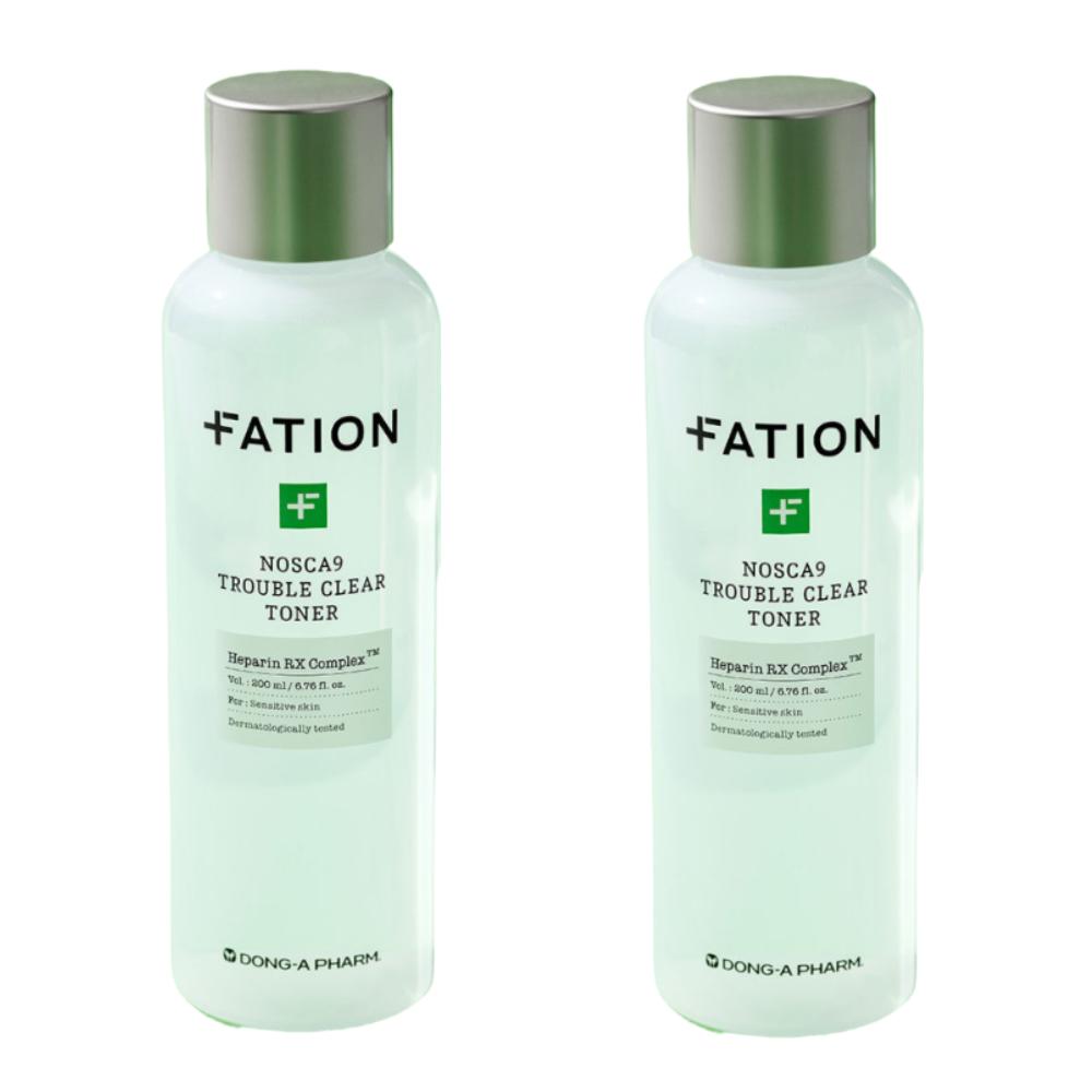 FATION Nosca9 Trouble Clear Toner Duo (200ml x 2): Gentle Exfoliation & Rapid Soothing Solution for Sensitive and Blemish-Prone Skin