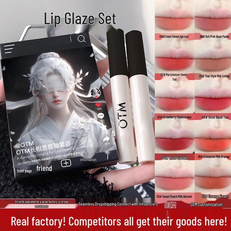 Set of 5 Matte Lip Glazes: Long-Lasting Velvet Finish in Milk Tea Color for a Natural Look