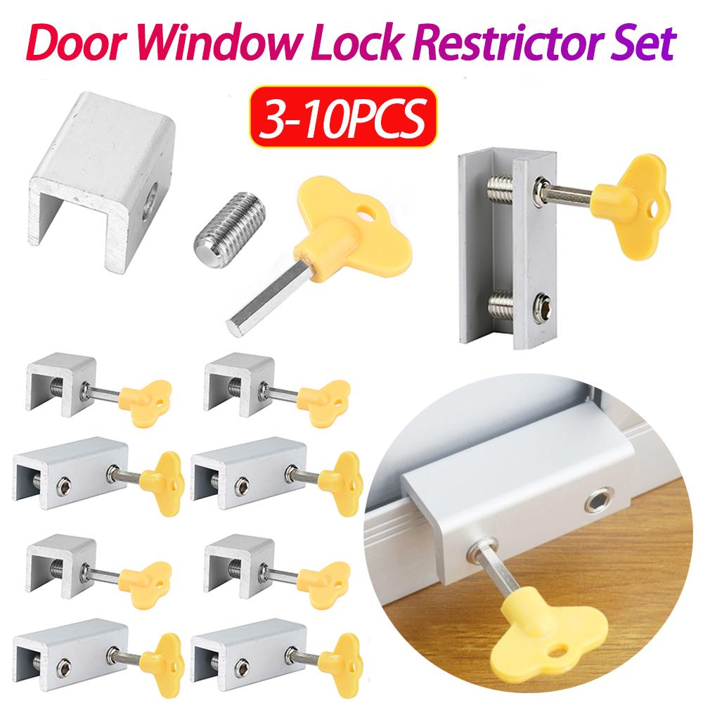 Sliding Window Locks with Key Door Window Lock Restrictor Adjustable Portable Alloy Security Multi-function for Kids Pets Home