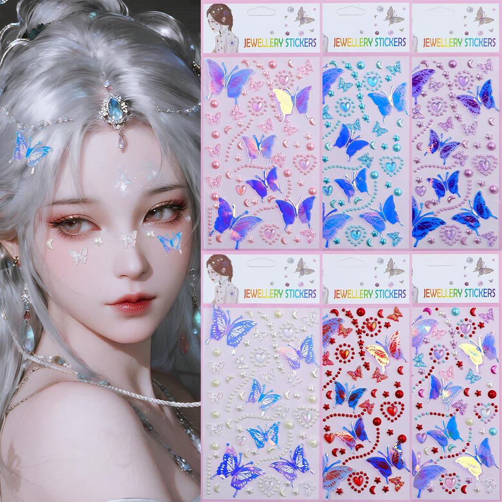 Bunte Schmetterlingsfee 3D Gesichtsaufkleber für Kinderschminke auf der Bühne