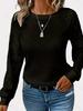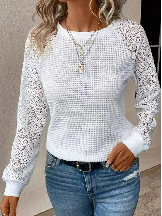 European & American 2025 Solid Lace Long Sleeve Hollow Round Neck Casual Women's T-shirt
