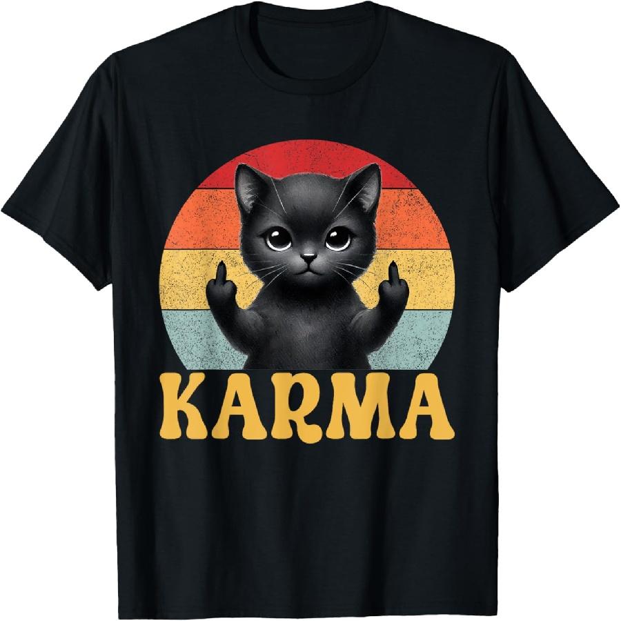 Cute Funny Cat Lover Middle Finger Retro Sunset Shape Karma T-Shirt
