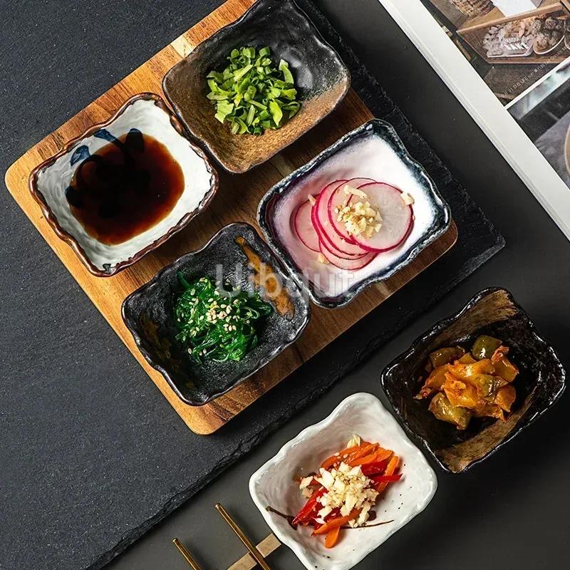 2 pcs set Japanese style ceramic special shaped small dishes snack dessert plate creative household tableware sauce snacks tray