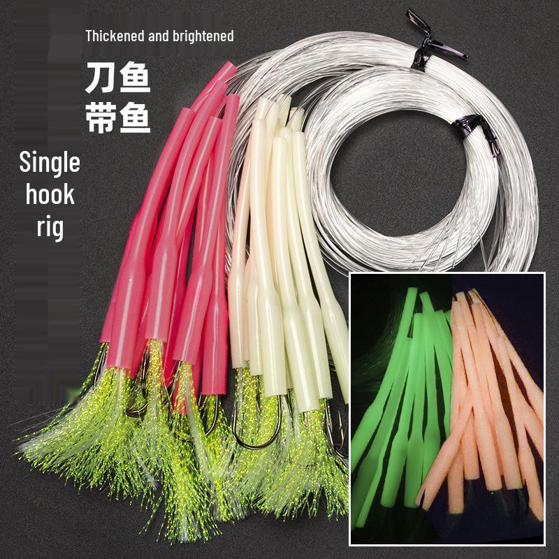 10 Stück Leuchtendes Nachtfischset: Meeresgürtel, Messer, Haken mit langem Griff, Bissfester Rig und 1,6 m Schnur