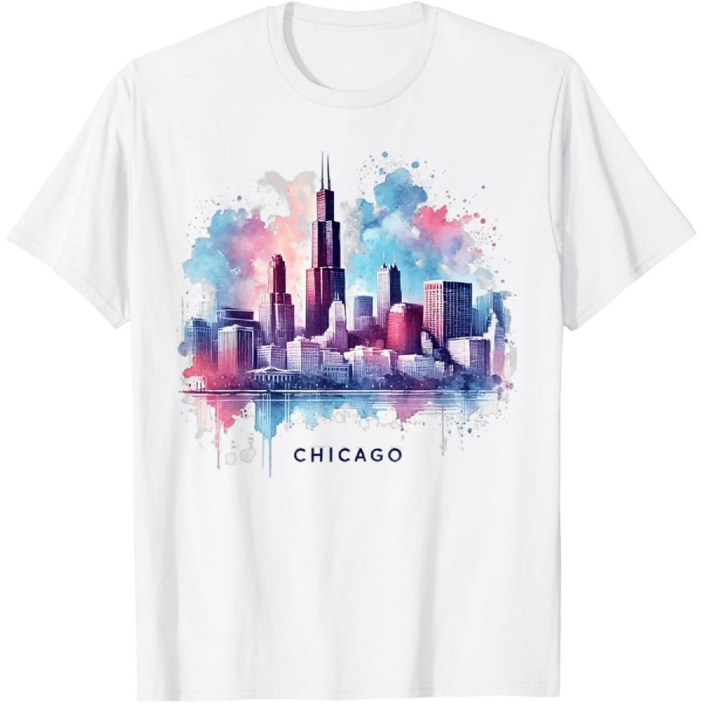 Chicago Stadtansicht Stadtlandschaft Aquarell Touristen Männer Frauen T-Shirt(1)
