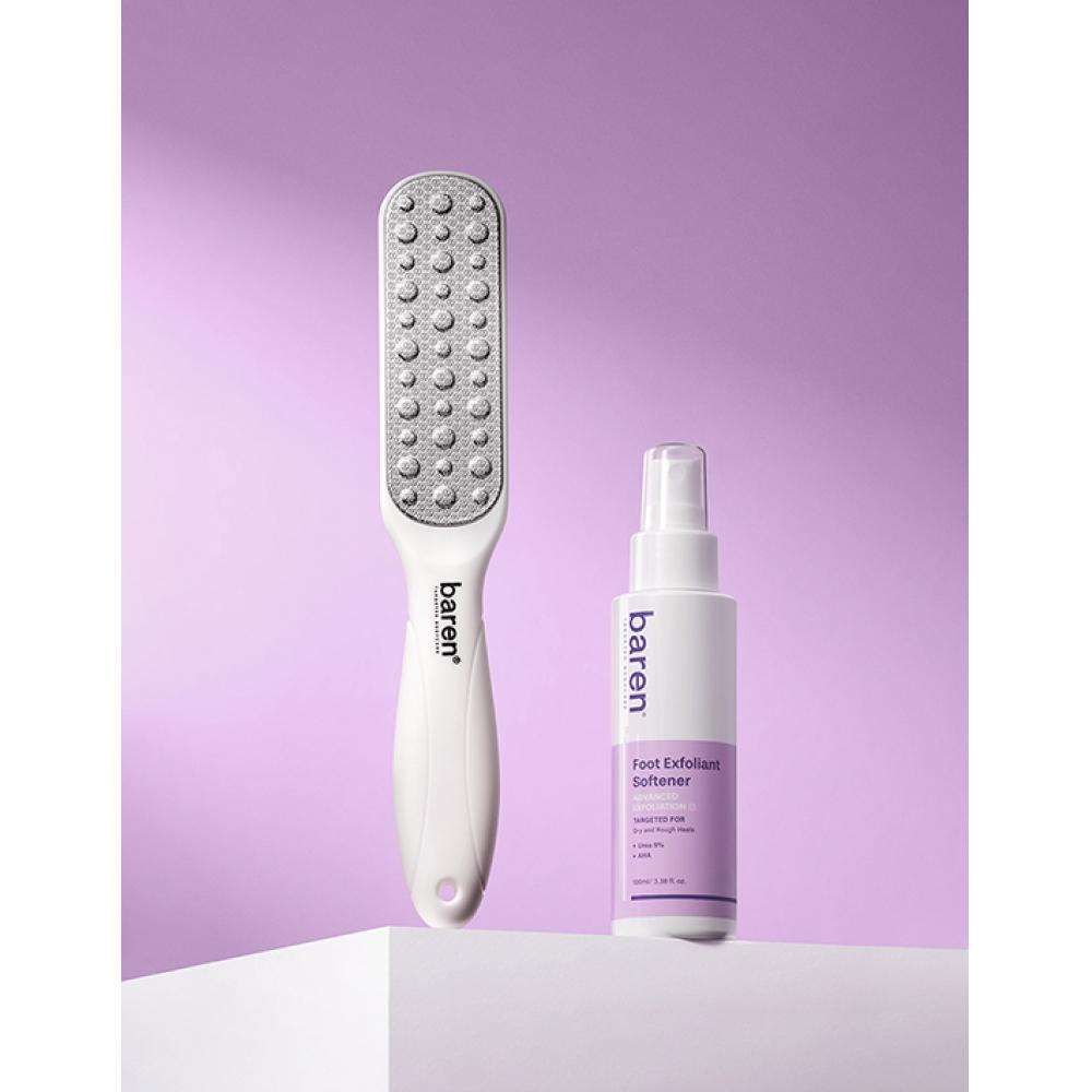 Baren Fuß-Hornhautentferner + Weichmacher-Spray 100 ml ist ein Fußpflegeprodukt, das entwickelt wurde, um Hornhaut und trockene Haut an Fersen und Fußsohlen schnell und sanft zu entfernen.. Sie müssen Ihre Füße nicht in Wasser einweichen oder lange warten. Sprühen Sie das Produkt einfach auf und es kann bereits nach einer Minute verwendet werden, was Bequemlichkeit bietet.. Angereichert mit pflanzlichen Inhaltsstoffen, ermöglicht es eine sanfte Anwendung ohne Reizungen und hilft, die Haut nach dem Peeling mit Feuchtigkeit zu versorgen und angenehm zu halten.. Die gemeinsame Anwendung mit dem Baren Hornhautentferner maximiert die Wirksamkeit und ermöglicht Ihnen glatte und weiche Fußhaut.