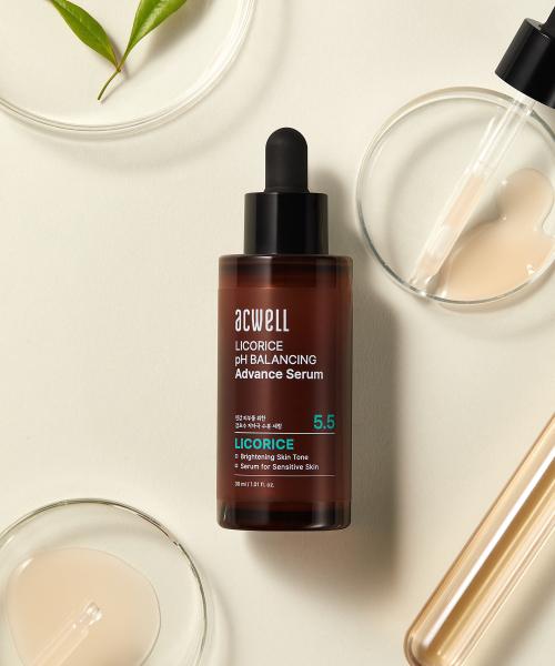 ACWELL Licorice Water pH Balancing Advanced Serum 30ml is a skincare essence based on licorice water extract. This product helps balance the skin's pH, soothing sensitive skin and delivering health. It focuses on reducing skin irritation and strengthening the skin barrier. Suitable for all skin types, it offers a soft feel upon use.