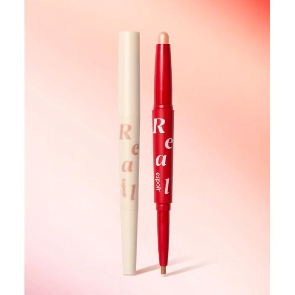 ESPOIR [1+1] Real Eye Aegyo Sal Stick is a dual-stick shadow designed to create a plump and natural-looking aegyo sal. This product features a creamy texture that adheres smoothly to the delicate eye area and maintains the makeup effect with long-lasting color powder. It enhances the aegyo sal area with volume and creates a natural shadow for a perfect eye makeup finish.
