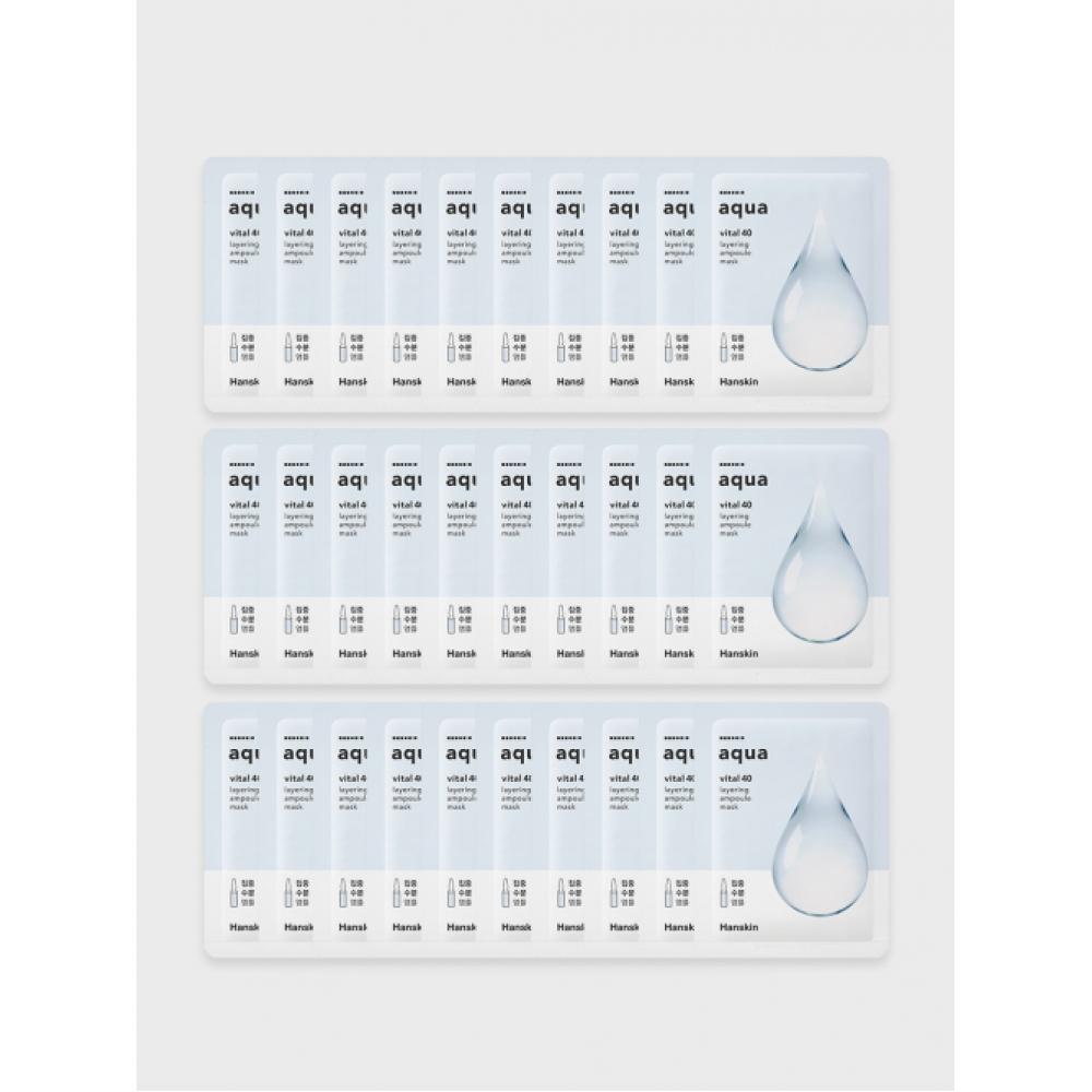 HANSKIN Vital 40 Layering Ampullenmaske (Aqua/Kollagen/Propolis) 30 Sheets ist ein Produkt mit Blattmasken, das auf die Tiefenfeuchtigkeitsversorgung und Elastizitätspflege abzielt.. Es enthält insgesamt 30 Blätter, wobei jede Art (Aqua, Kollagen, Propolis) mit einer Kapazität von 21g. Der Aqua-Typ spendet tiefe Feuchtigkeit, während der Kollagen-Typ hilft, die Hautelastizität zu verbessern.. Der Propolis-Typ bietet Schutz und beruhigende Wirkung für die Haut. Jede Maske ist mit 40 feuchtigkeitsspendenden Inhaltsstoffen geschichtet und bildet eine Elastizitätsschicht und eine Feuchtigkeitsschicht, um pralle Haut zu spenden.