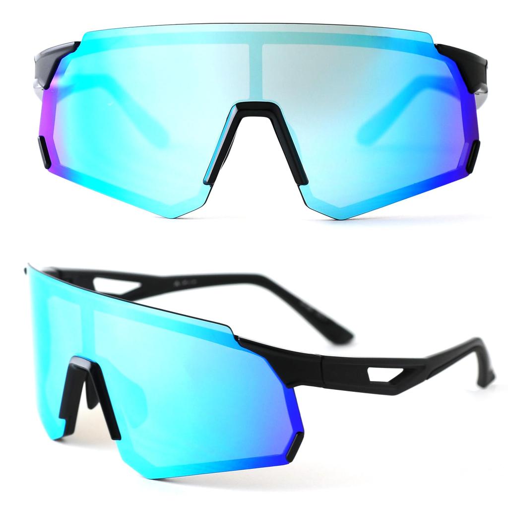 Sports Black Matte Mirror Blue Ribbon A-Fit Men's Sunglasses, Lens, Mirror, AF-806-C3