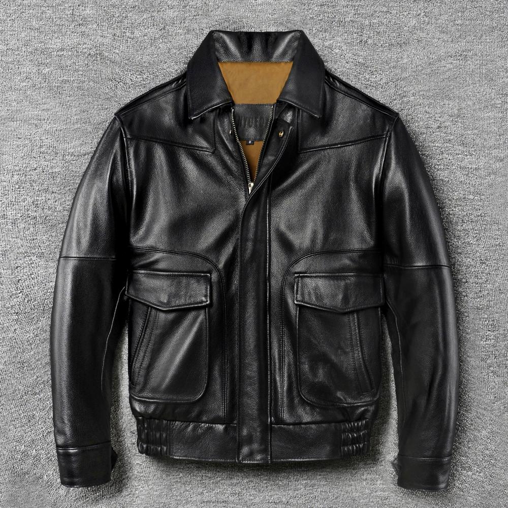 Vintage Red Brown Men Leather Jacket Oversized Style Black Genuine Cow Loose Man Bomber Coat Plus Size