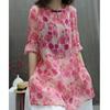 Baumwolle und Leinen Damen Sommer Top Damen Neuer Print Leicht und Locker Lässig Vielseitig Mittellange Ärmel Hemd Top