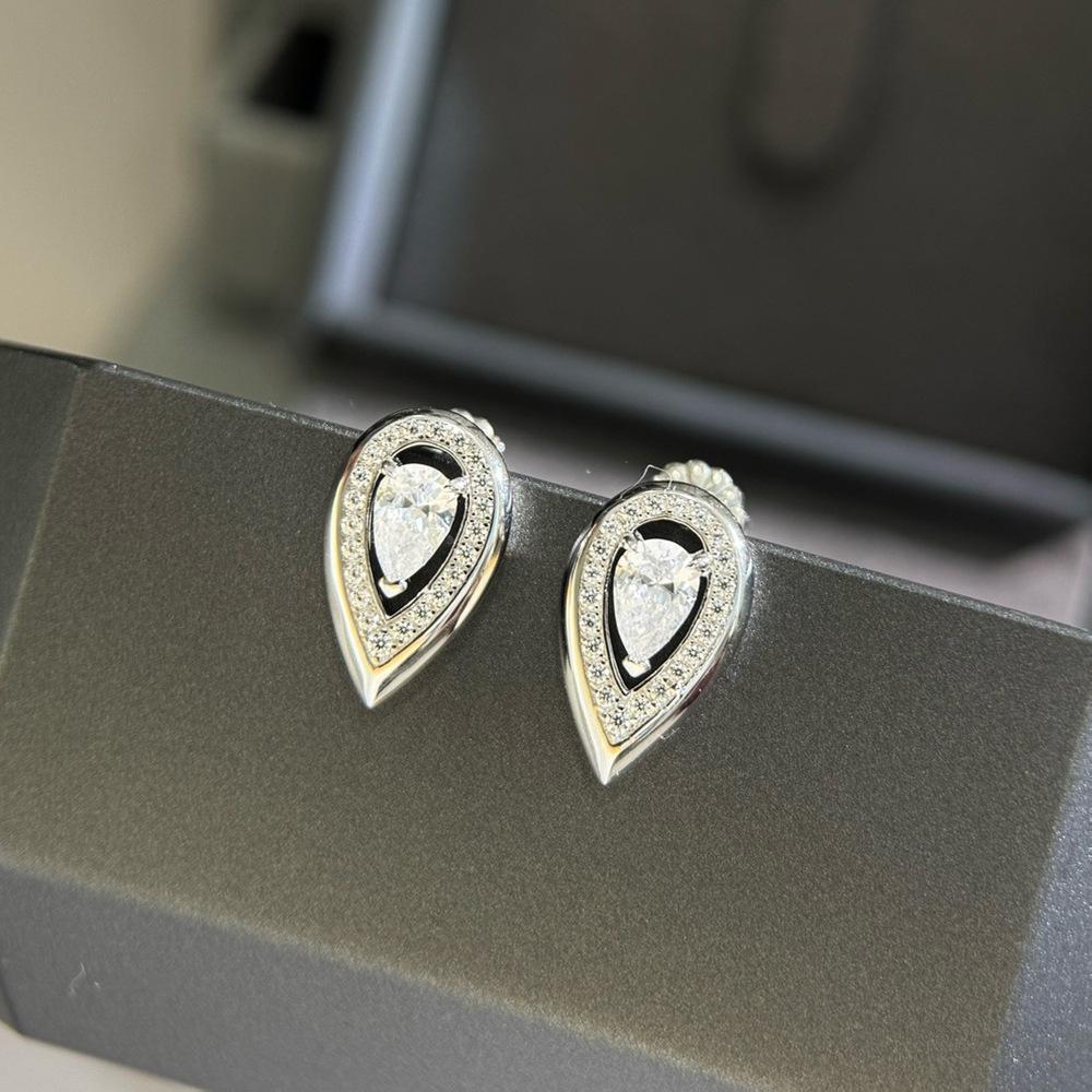New Vintage 100% Pure 925 Sterling Silver Earrings Pave Aaa Zircon Water Drop Ear Stud For Women Luxury Wedding Jewelry