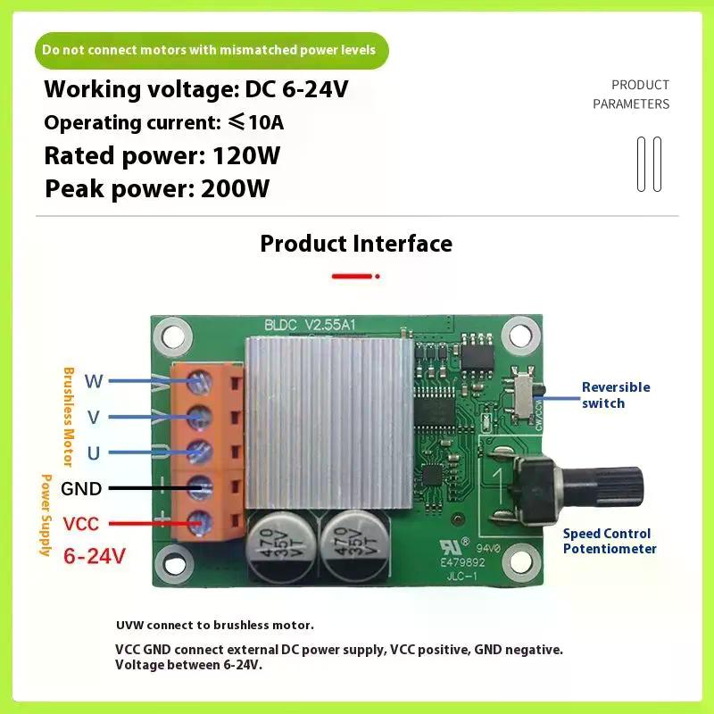 75W 200W DC 6-24V Brushless Motor Drive Control Board High-power 6V12V24V Brushless Fan Motor Speed Controller