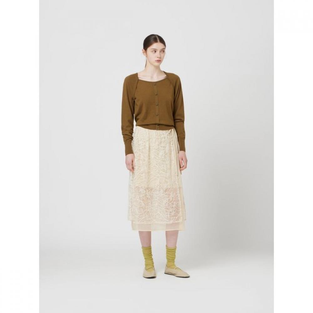 The CC Collect Square Neck Button Pullover_C253KSK003 is a feminine silhouette knit pullover made from a wool blend yarn. The raglan sleeves are designed to give a slimmer look and the silhouette feels as if you're wearing a top and bolero together. This item provides a feminine and delicate impression.