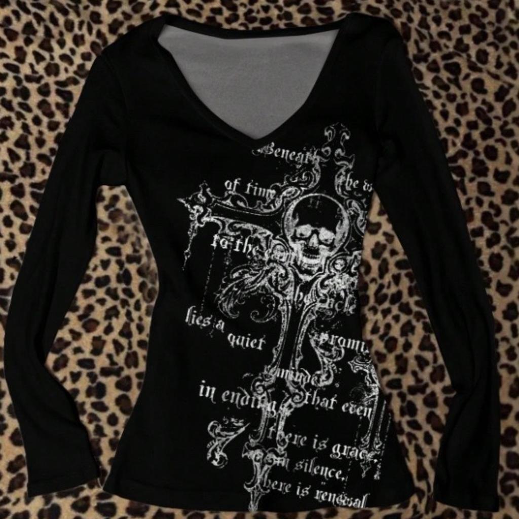 TrendHub Y2k Fairy Grunge Grafik T-Shirts für Damen E-Girls Goth Geripptes Langarm-T-Shirt Tops Vintage Emo Kleidung 2000er Retro Streetwear