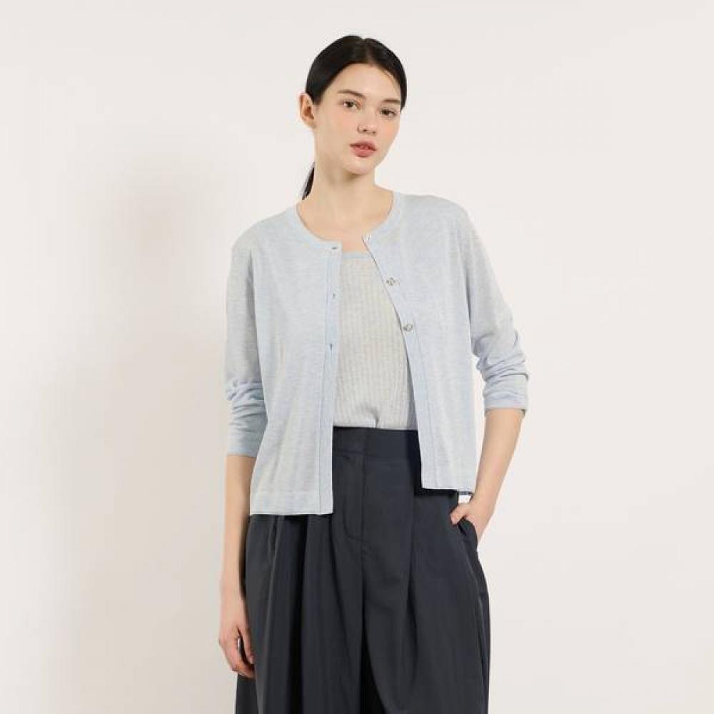 The BCBG 3 Button Bolero Cardigan B5M4K219 features a classic cable knit design with harmonious button details. The bolero style offers a short length, making it suitable for summertime or light layering. With three button details and a round neck, it emphasizes a casual yet feminine mood.