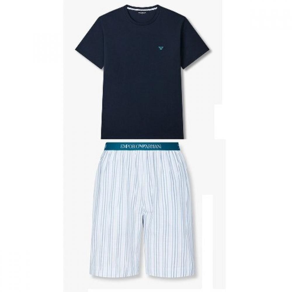 This product is a men's lounge set from the EMPORIO ARMANI UNDERWEAR lineup, featuring a comfortable easywear with a mini eagle logo. The t-shirt emphasizes a lightweight feel with its lounge t-shirt design and is suitable for homewear or loungewear when paired with shorts.