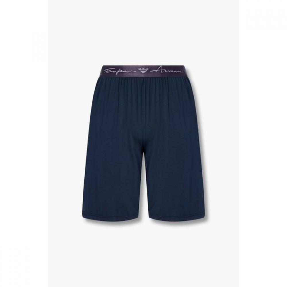 The EMPORIO ARMANI men's logo embroidery stretch shorts are made from rayon material, boasting a soft touch. The color-blocked waistband design and embroidered logo point stand out, while the side pocket detail enhances practicality. This item features excellent stretch, allowing for comfortable wear.