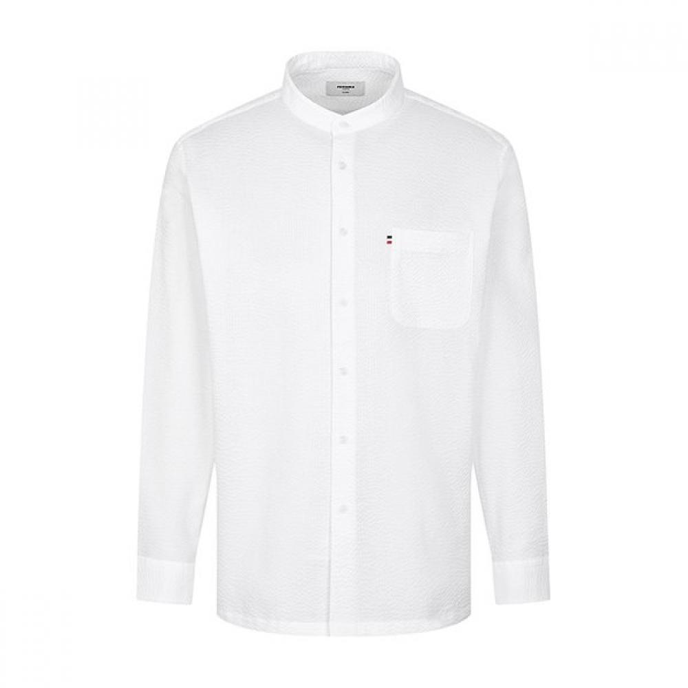 The Regular Fit Cotton Seersucker Solid China Collar Shirt is designed with a china collar, making it stylishly wearable without a tie.