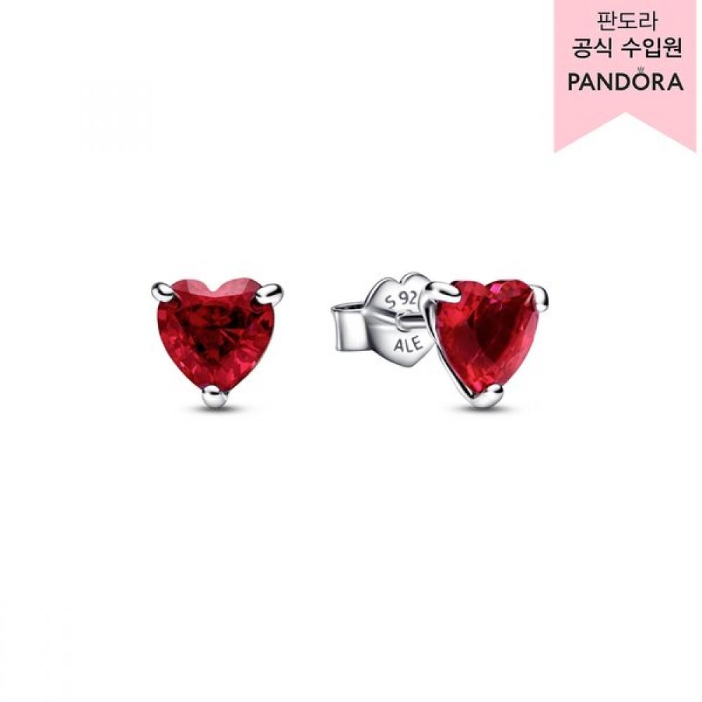 The Pandora Red Heart Stud Earrings (Model No: 292549C01) are earrings made from sterling silver, featuring a tri-strand design set with heart-shaped cut red artificial crystals, giving a romantic feel. The small stud shape is suitable for everyday wear.
