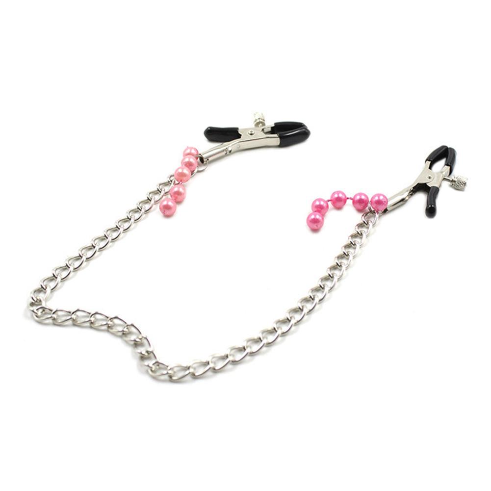 1 Pair Adjustable Nipple Clamps with Long Metal Chain and Colorful Beads Women Fetish Flirt Bondage Sex Toys