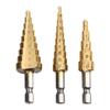 3PCS Hexagonal Handle Stepped Drill Bit Spiral Drill Bit Steel Plate Tapper Tool Set