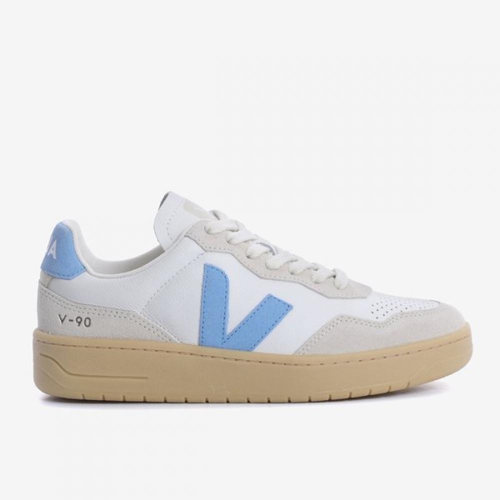 The VEJA Men's & Women's Leather Sneakers V-90 SVJU251VD20-895 are eco-friendly sneakers made from soft leather uppers and vegan suede, featuring a natural rubber sole. The sneakers incorporate innovative tanning processes that reduce water and salt usage, while the non-slip patterns ensure safety. They offer excellent wearing comfort and stand out with their naturally soft connections.
