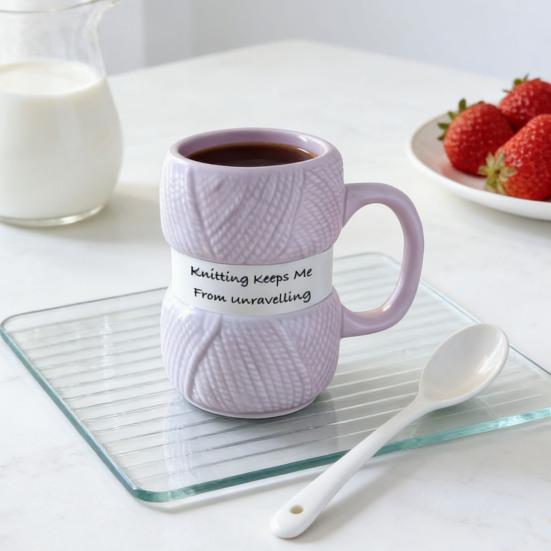 Realistisches Garn-Design: Diese Keramiktasse verfügt über eine detailreich gestaltete Außenseite, die ein echtes Wollknäuel nachahmt und eine gemütliche und charmante Ästhetik bietet.. Die texturierte Oberfläche sorgt für haptisches Interesse und macht sie zu einer angenehmen Begleiterin für Stricker und Bastelfreunde in ihren Pausen.