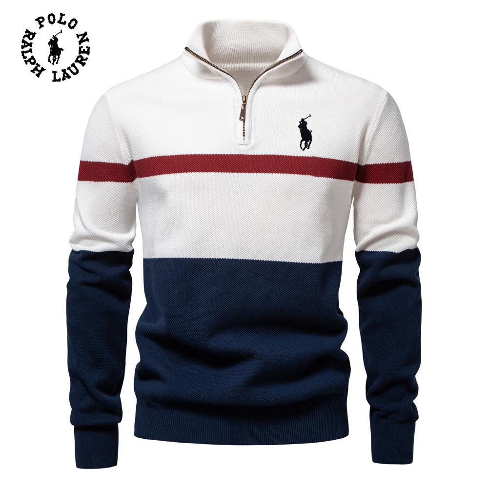 Polo Ralph Lauren Gestickter Neuer Großer Stehkragen Damenpullover Halber Reißverschluss Color Block Gestrickter Pullover