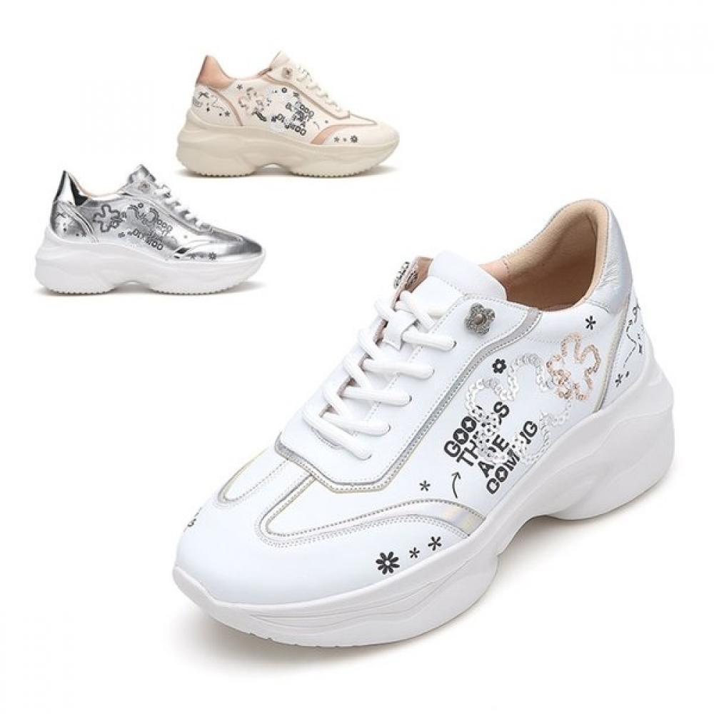 The specific material composition of this product is not disclosed, but it is presumed to be made of common materials for women's sneakers (synthetic leather, leather, rubber outsole, etc.).