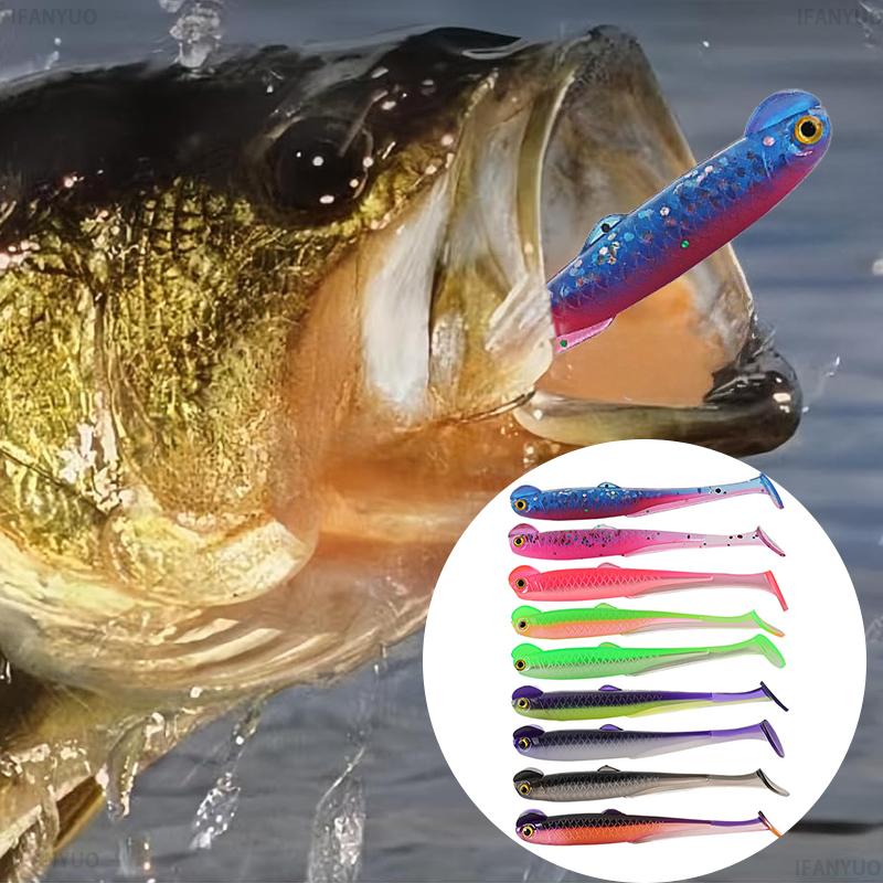 15PCS Fishing Lures 6cm 1.3g PVC Soft Bait T-Tail Swimbait Wobblers Slow Sinking Artificial Lure Pike Bass Fishing Tackle Pesca