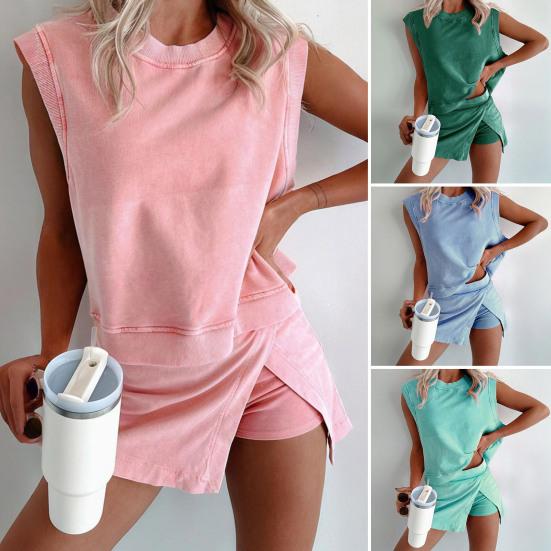 Dieses vielseitige zweiteilige Set ist ein Must-Have für Ihre Garderobe. Das Set aus 100% reiner Baumwolle besteht aus einem bequemen Baumwoll-Top und einem stilvollen Schlitzrock.. Die ärmellose Weste hat einen Rundhalsausschnitt, perfekt für lässige Sommerkleidung..