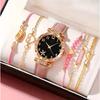 Damenuhr Damen Diamant Zifferblatt Armband Quarz Uhr Perlenarmband Set