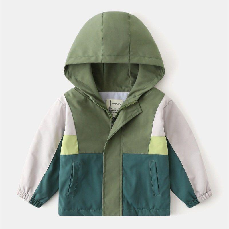 Children's Padded Coat Spring and Autumn K-style Boys Fashion Colorblock Shell Jacket Boys Zipper Hoodle Tops