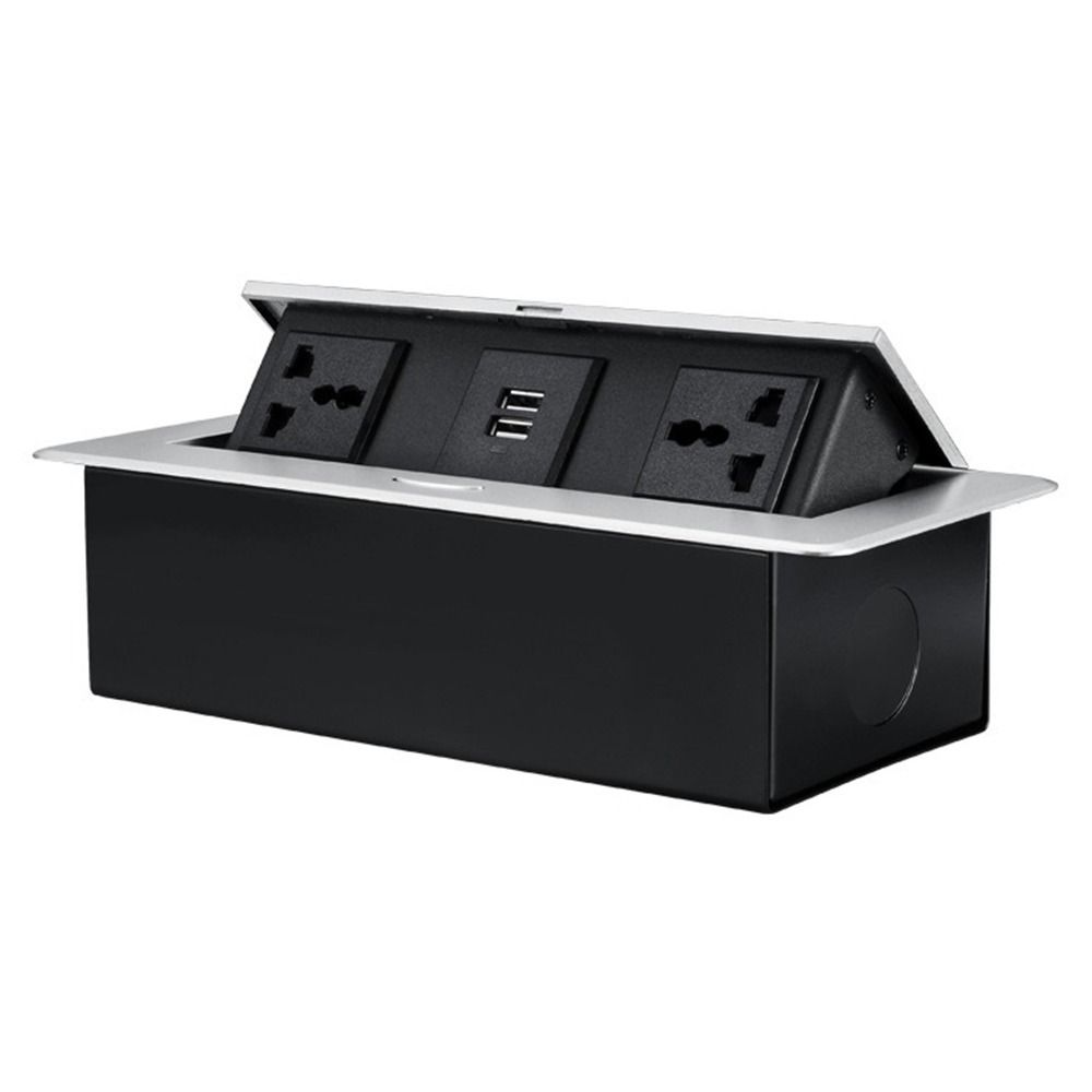 Metallplatten-Tischplatten-Aussparungssteckdose Eingebettete Klappabdeckung Schreibtisch-Steckadapter Drei-Loch Multifunktionaler Auswurf
