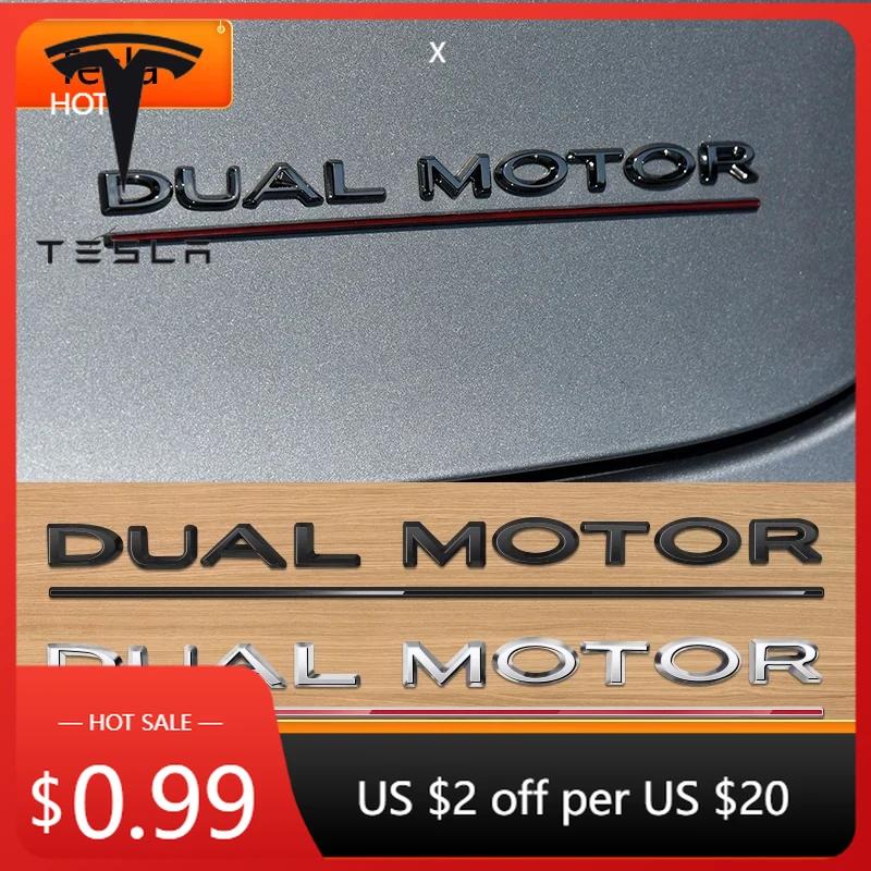Autoaufkleber Tesla DUAL MOTOR Unterstrichene Buchstaben Emblem für TESLA Model 3 Y S X Autostyling Nachrüstung Kofferraumplakette Aufkleber Chrom