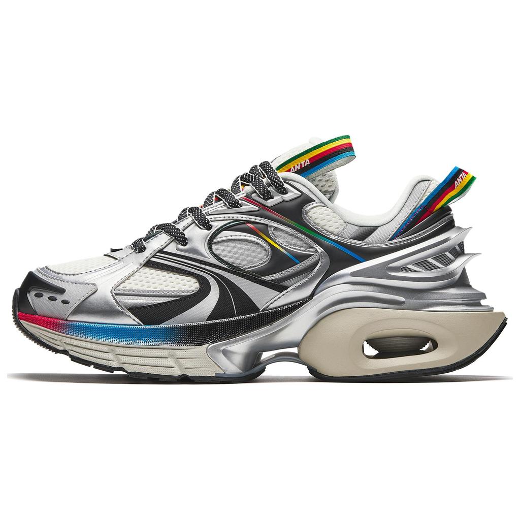 Anta Microchip Cloud Textile, Synthetic Leather Abrasion Resistant Low top Casual Shoes Men's White Silver Black Sneakers
