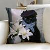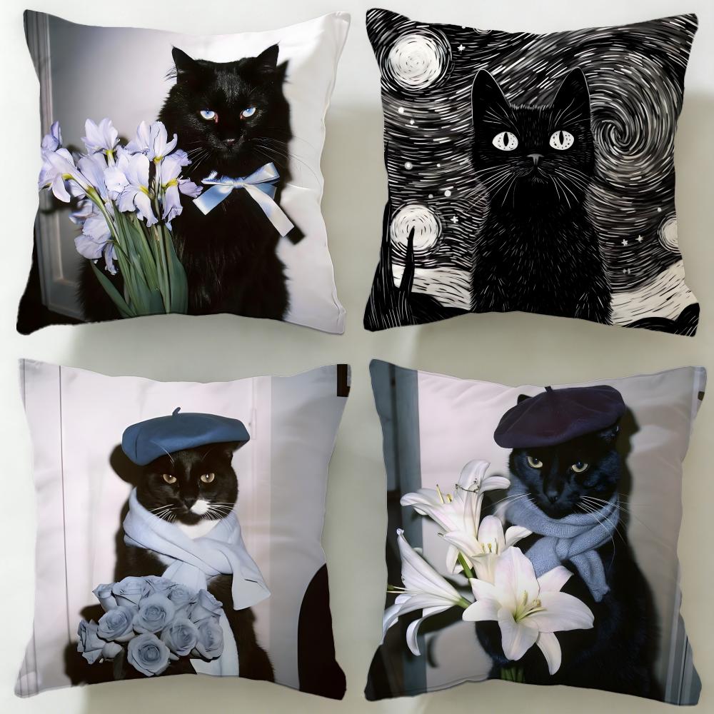 classic theme black cat Cushion Cover Soft & Easy-Wash Pillow Case – Versatile for Couch, Bed, Travel and Office