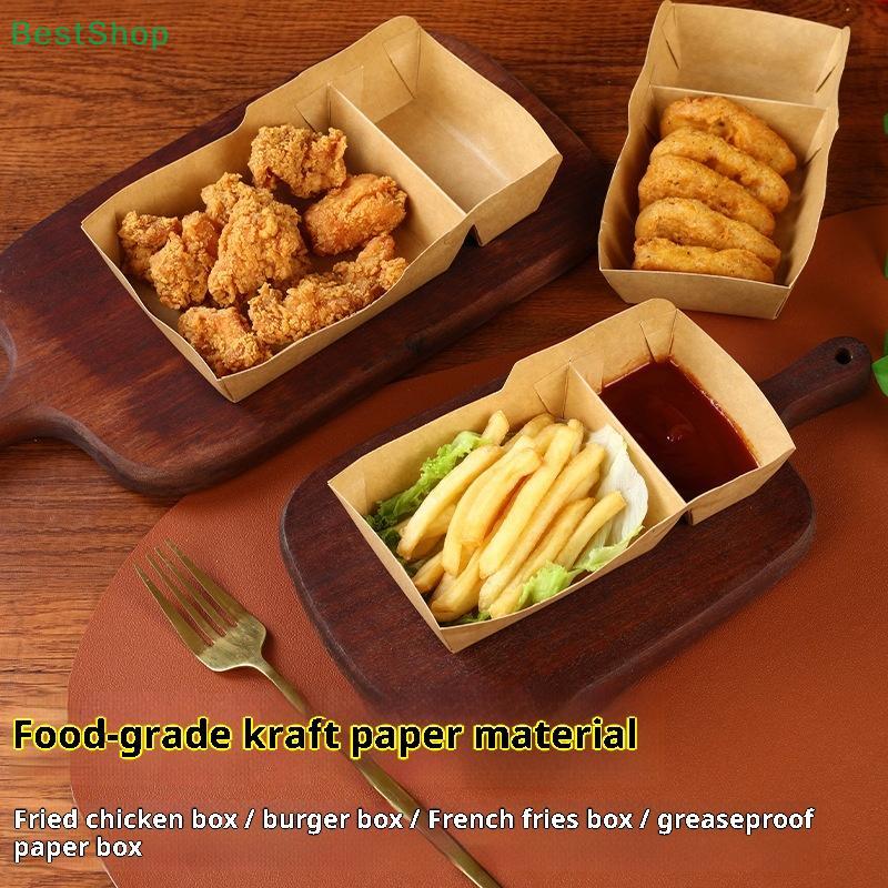 50 Stück Kraftpapier Zweifach-Gitter Lebensmittel-Tablett Einweg Servicekorb Für Snacks Pommes Tacos BBQ Party Geschirr Set