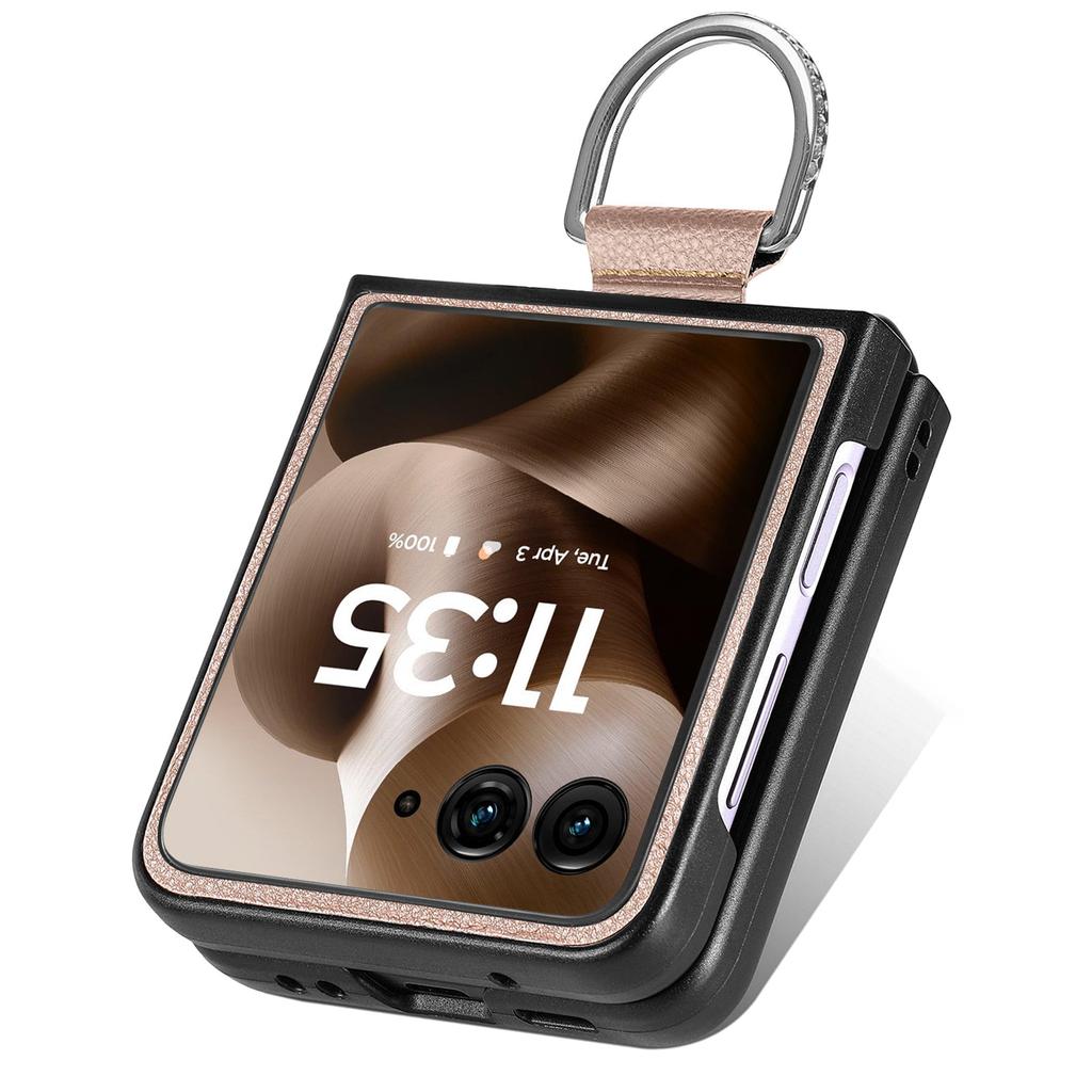 Für Motorola Razr 60 Ultra 5G Hülle Litschi-Textur Leder + PC Handyhülle mit Ringhalter