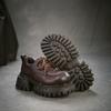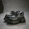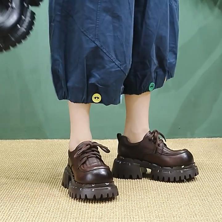 Johnature Britischer Stil Schnürschuhe Runde Spitze Dicke Sohle Echte Leder Vielseitige Damen High Heels Pumps