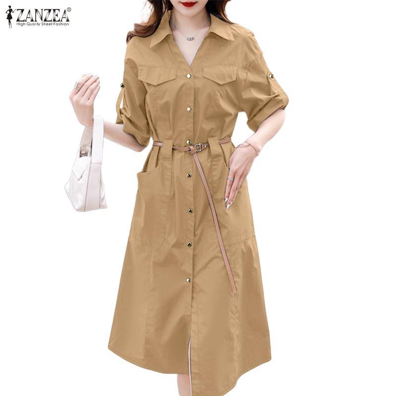 ZANZEA Damen Freizeit Umlegekragen Locker Halbarm Hemdkleid