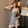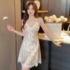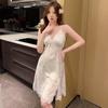 Neue Pyjamas Damen Frühling und Sommer Druck mit Brustpolster Trägerschaft Rock Reiner Begehren Stil Mehrfarbige Spitze Sexy Nachthemd