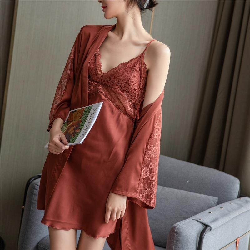 Sexy Pyjamas für Frühling und Sommer, Damen-Eisseide, dünne Modelle mit Brustpolstern, Trägern, Nachthemden, Nachthemden, zweiteilige Sets, schöner Rücken Lounge