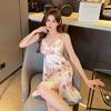 Sexy print nightdress Ice Ribbon chest pad summer thin new women's suspender pajamas pure loungewear