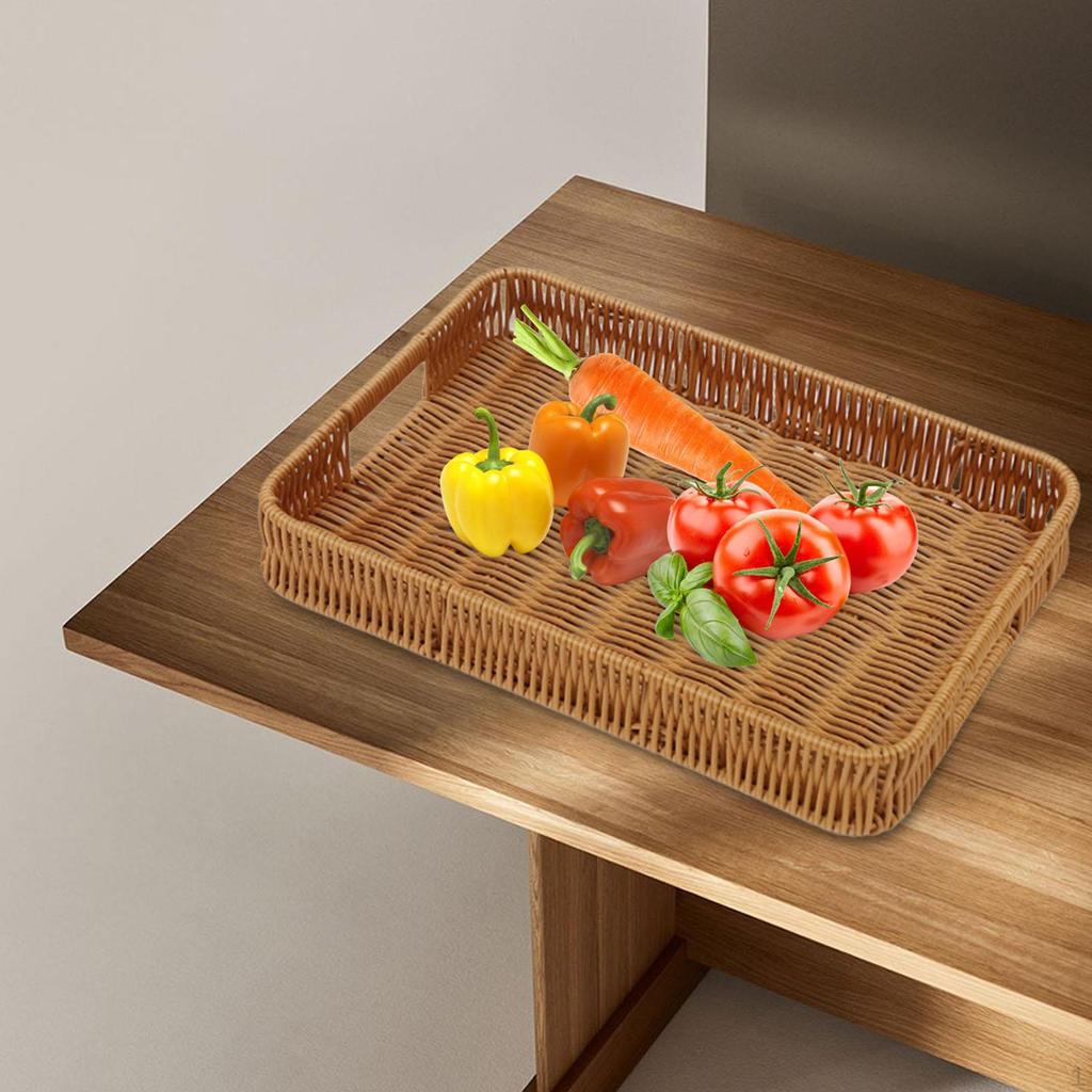 - Handgewebtes Serviertablett: Dieses handgewebte Korbtablett besteht aus PP-Material, geruchlos, umweltfreundlich, rein handgefertigt und auf traditionelle Weise serviert.