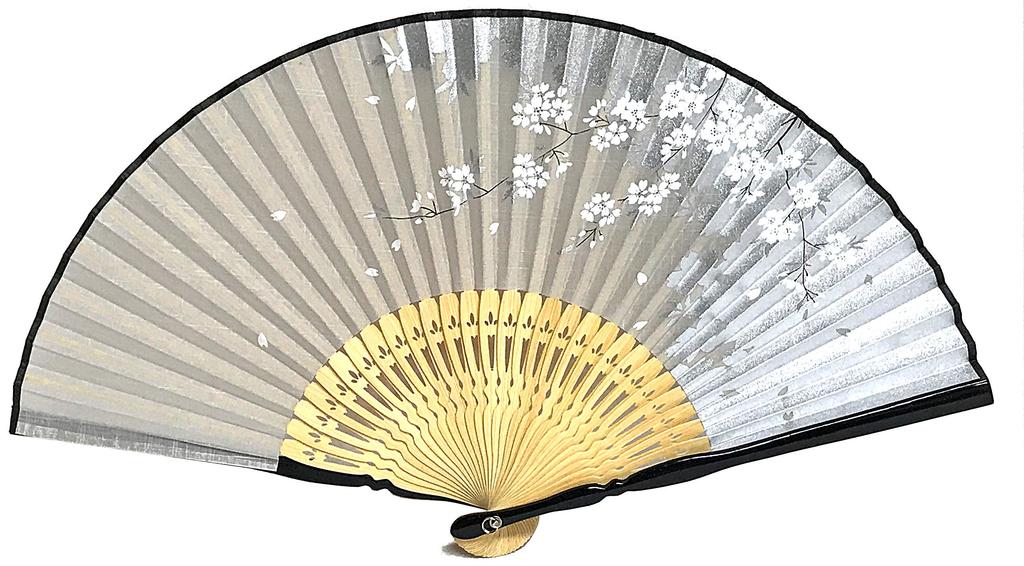 Faltfächer-Set mit Fächertasche und Silberner Kirschblüte Japanischer Weißer Faltfächer für 21cm [Hana Kanzashi] Damenetui, Folie, Perlglanz,